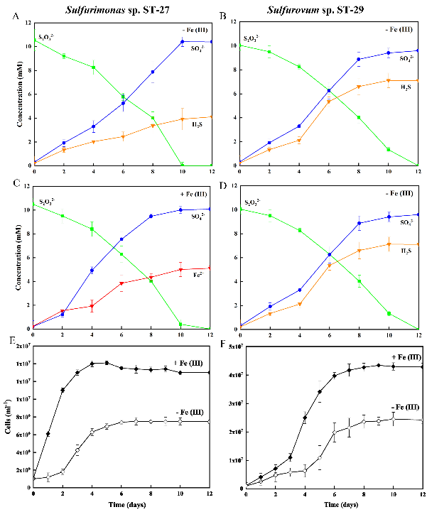 图1. Sulfurimonas sp. ST-27和Sulfurovum sp. ST-29硫歧化特性。